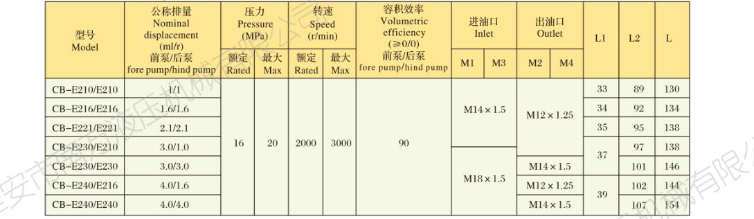 CB- E200/E200系列雙聯(lián)齒輪泵